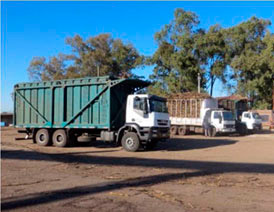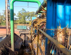 Conductoras que transportan la caña al trapiche (extrae el jugo y el bagazo)